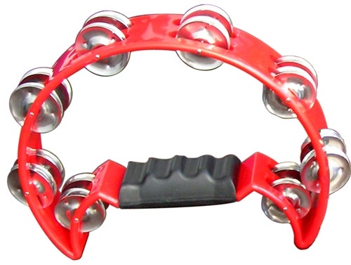 Cutaway Tambourine with 16 pairs of jingles. Red.