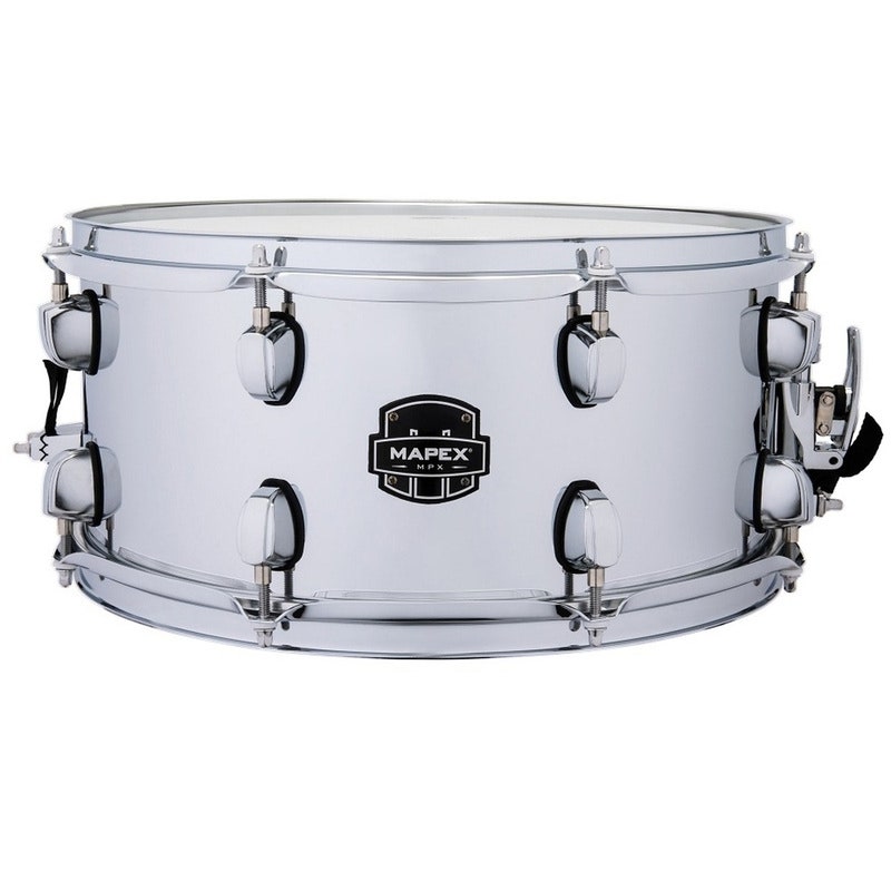The Mapex MPX steel snare drum is well equipped for any musical context. Equipped with a Piston Strainer with vertical throw-off, enables a quick, comfortable, and smooth operation and prevents snare wire tension changes while playing. The same strainer is also used on the Armory Snare “Tomahawk”. Hardware and lugs in high polished chrome, and Remo® UX heads.