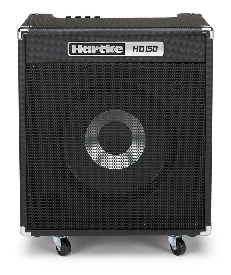 The HD150 (150 watts, 15" driver, 1" tweeter) employs Hartke's patented HyDrive Speaker Technology that offers a carefully crafted hybrid (half paper, half aluminum) cone bass speaker. By combining the warmth and roundness of paper with the punch and attack of aluminum, the HyDrive design produces serious tone that is ideal for bass players of all genres and styles.