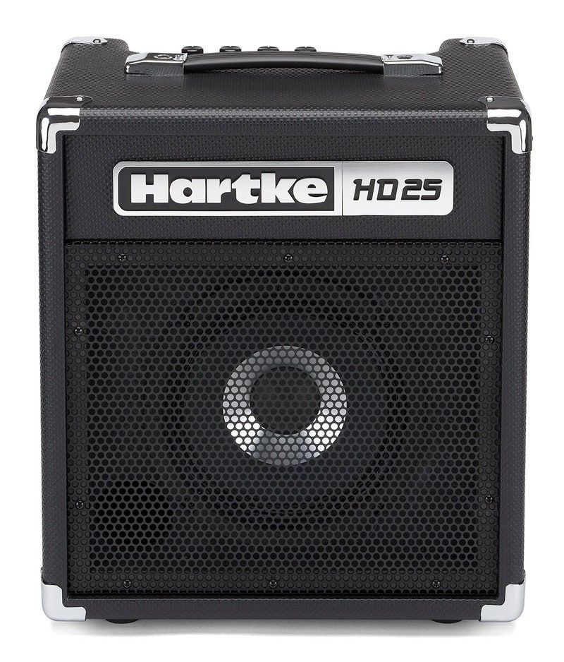 The HD25 (25 watts, 8" driver) employs Hartke’s patented HyDrive Speaker Technology that offers a carefully crafted hybrid (half paper, half aluminum) cone bass speaker. By combining the warmth and roundness of paper with the punch and attack of aluminum, the HyDrive design produces serious tone that is ideal for bass players of all genres and styles.