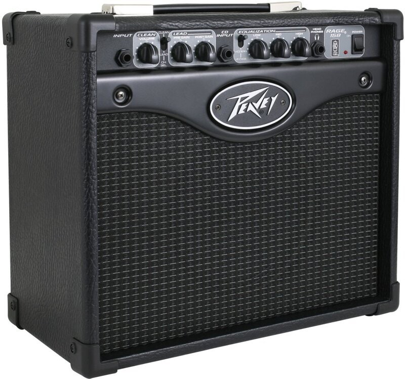 The Peavey Rage 158 15W Guitar Amplifier features 2 channels-clean/lead and 2 radically different voicings -- Modern and Vintage. The Modern position maintains a warm, standard voicing while the Vintage position adds a hint of brightness to emulate some classic amp designs. Pre and post gain knobs, 3-band EQ, a headphone jack and a Line-input to connect an external audio device, make this hard-hitting little amp perfect for jamming with friends or solo practice.