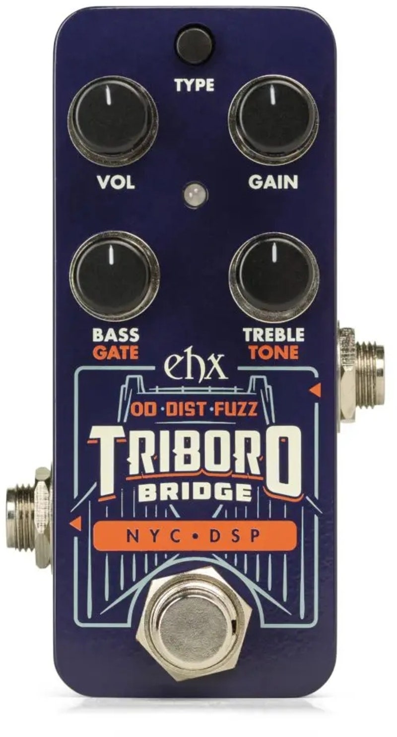 The EHX Pico Triboro Bridge is a tri-mode drive box with a wide range of tonal possibilities. Featuring Overdrive, Distortion, and Fuzz modes, it bridges any gap in your gain. With a powerful EQ, input contouring, and a pico-sized footprint, the Triboro Bridge can be your tonal keystone or a welcome change from the routine drive.