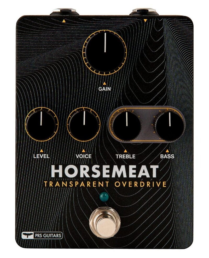 The PRS Horsemeat transparent overdrive is a from-scratch circuit designed to enhance guitar tone without coloring it. Using germanium diodes, Horsemeat will give throatiness without sounding nasal or too high-pitched and harmonic richness by boosting both low- and high-end frequencies, all while providing more available headroom. Depending on the setting, the PRS Horsemeat can be used as a clean boost, straight overdrive, or even enhance an amplifier’s distortion by slightly pushing the front end of the amp’s preamp section.