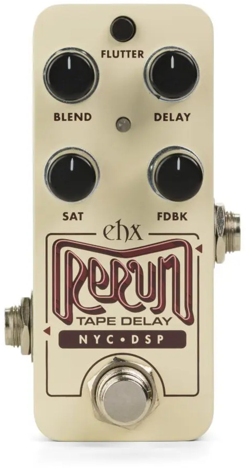 Tape delay is loved for its warmth and charming imperfections compared to pristine digital delays. Their preamps could be pushed to saturation and, over time, the tape in vintage delay units would degrade causing a signature warble loved by many. These signature elements are captured and packed into Electro-Harmonix’s Pico Rerun tape delay. Based off the tape delay algorithm found in the Canyon Delay & Looper, the Rerun gives vintage vibes with modern features.