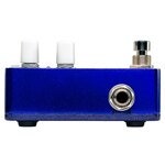 The two main controls on the Atomic Cluster are the ATOMS and SPEED knobs. ATOMS controls the number of simultaneous resonant oscillations sounds at any moment, from a full spectrum of what is being processed down to a single note. With more oscillations, the tone is closer to your input signal. As the control is turned down, oscillations are reduced, creating a more pixelated, glitchier sound. The SPEED knob adjusts how quickly the pedal refreshes the oscillations, allowing you to control the timing and rhythm of the effect. Slower settings can mimic the sound of a rhythmic step filter while faster settings create a more chaotic random feeling effect. SPEED can also be set by tap tempo. Additional VOL and BLEND controls adjust overall output level and wet/dry mix respectively.