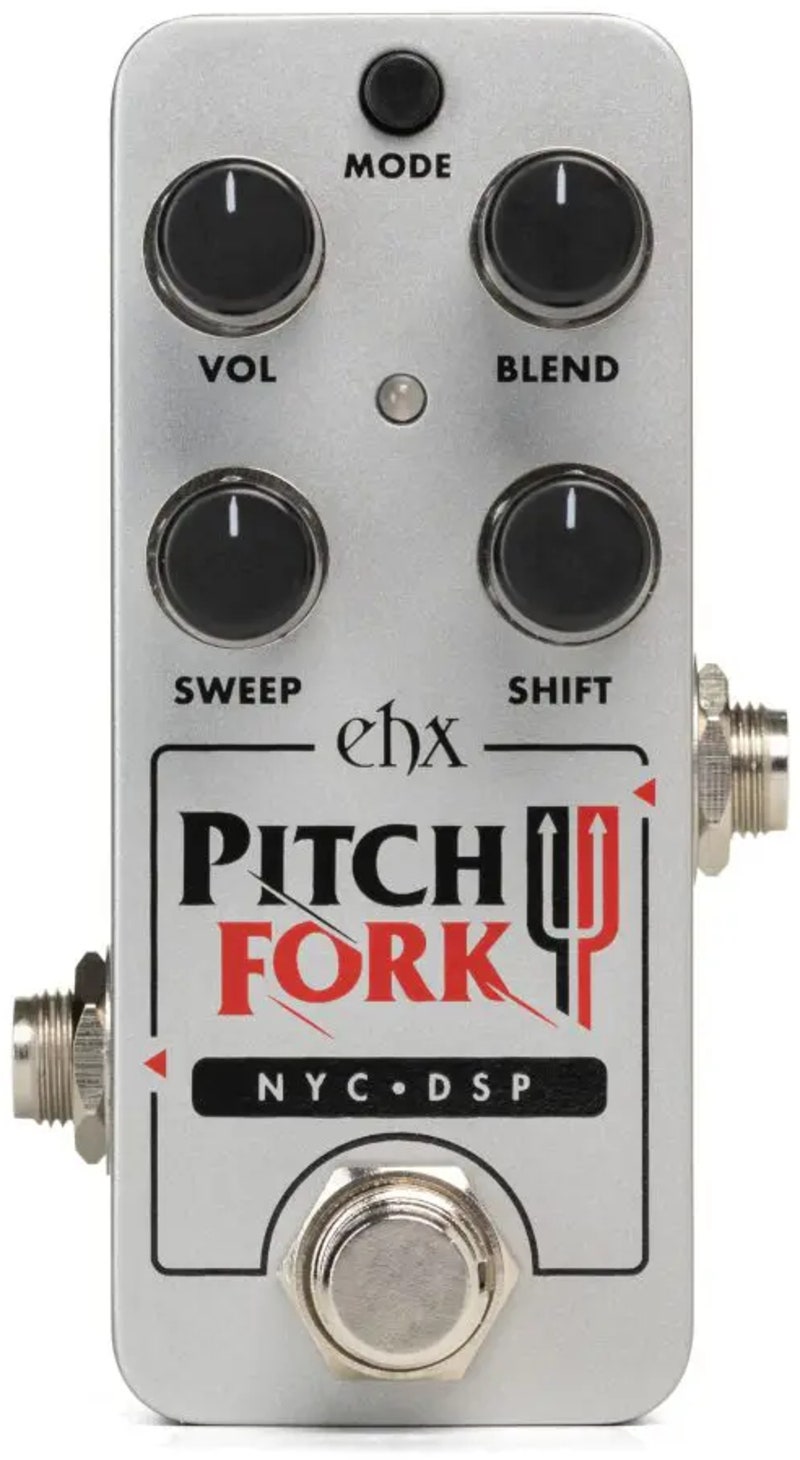 Offering a total of 30 pitch shift options and expanded controls, the Pico Pitch Fork is the next evolution in pitch shifting from Electro-Harmonix. The original Pitch Fork has garnered praise from all styles of player at every level and the Pico Pitch Fork brings even more features to the celebrated pedal in an impossibly small package.