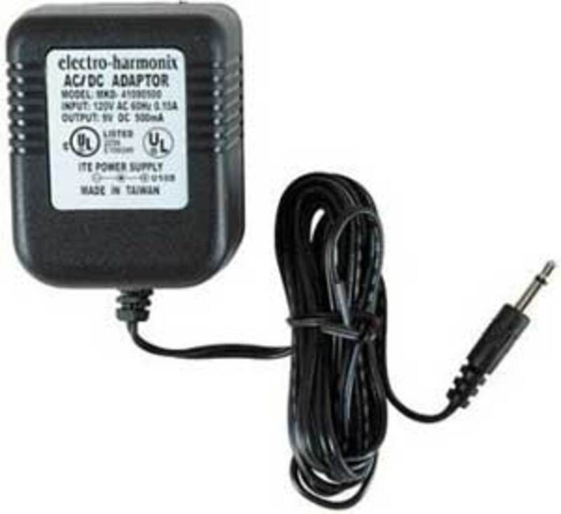 Power adaptor for Elecroharmonix pedals. 9V DC, 500mA, 3,5 mm plug.