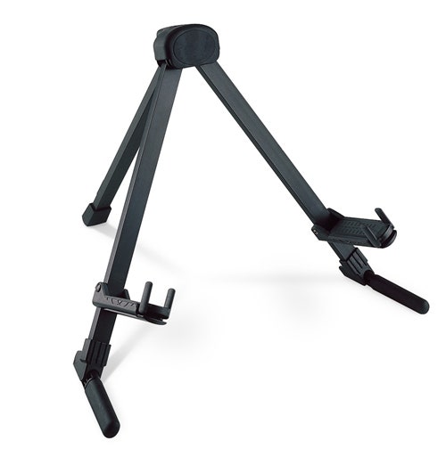 Wherever you go! The new guitar stand - Memphis Travel« is perfect for travel. Thanks to its small size, no more than a DIN A4 sheet in height and its amazingly low weight of only 400 g, it belongs in every Gig Bag. The adjustable support arms mean the stand can be used for electric or acoustic guitars. With just a few moves the compact stand is ready to use. The non-marring plastic material protects the guitar from damage.