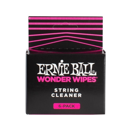 Individually sealed 6-pack of Wonder Wipe String cleaning moist towelettes. Clean & extend the life of your strings in one easy swipe. Ernie Ball's proprietary lubricating formula eliminates acid, dirt, and grime while maximizing the life and tone of your strings.