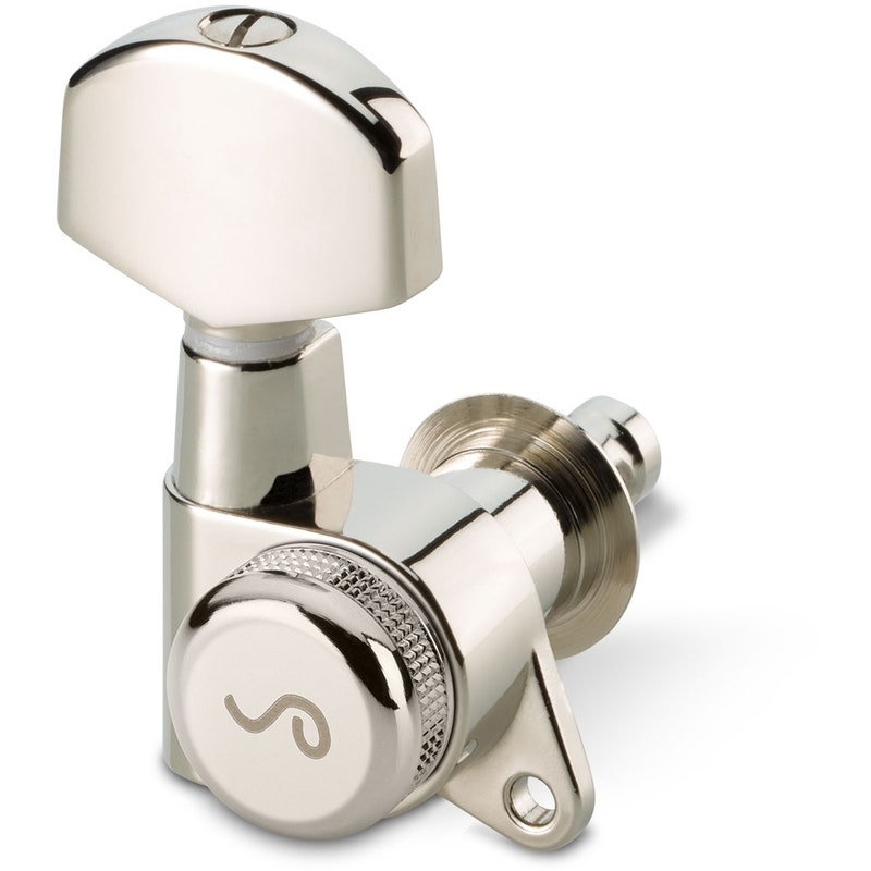 Locking tuner for guitar. 3 left, 3 right. Chrome.