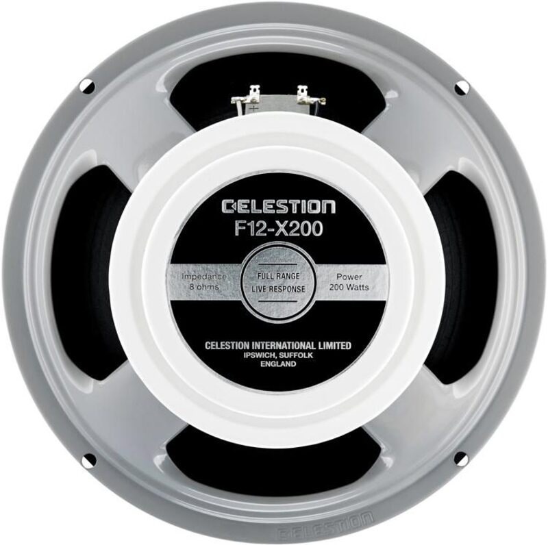 The F12-X200's response is remarkably neutral, with Celestion technology built in to ensure there are no unwanted colourations that can overpower the input signal. However, the lighter moving mass and straighter sided cone of the type commonly used with guitar speakers gives the X200 the feel and live response of a traditional guitar speaker, delivering all the physical feedback you'd expect from playing through a conventional guitar rig. Used with amp modellers or IRs, in a backline cab or a wedge monitor, on stage or in the studio, it doesn't just sound like great guitar tone, it feels like it too.