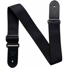Comfortable and adjustable woven polyester guitar strap in black, with black leather ends.