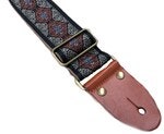 Article number 34218472" woven guitar strap with classic edging pattern, and garment suede leather backing.