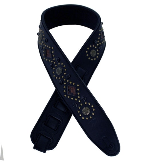 2,5" Top quality soft garment leather strap with black pearls, brass colored studs and badges. Black.