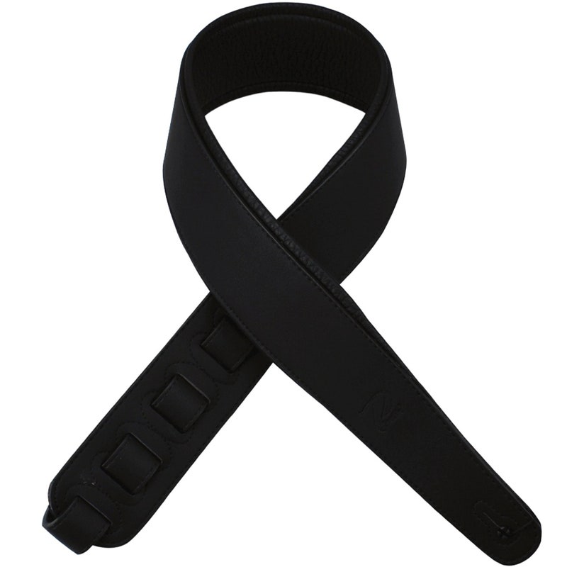 2,5" wide Top quality Garment Leather guitar strap with foam padding for extra comfort. Color: Satin Black.