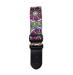 2" Terylene sublimation printed guitar strap with artist designs, leather ends and tri-glide adjustments.