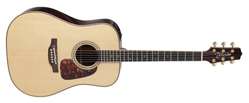 Premium design appointments include an ebony fingerboard with ivory binding, abalone “snowflake” inlays, a dark rosewood headcap with abalone Takamine logo, gold tuners with gold buttons, a natural bone nut and smooth gloss natural finish. The P7D comes complete with a premium archtop hardshell case.