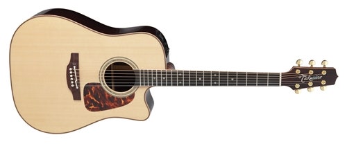 Premium design appointments include an ebony fingerboard with ivory binding, abalone “snowflake” inlays, a dark rosewood headcap with abalone Takamine logo, gold tuners with gold buttons, a natural bone nut and smooth gloss natural finish.