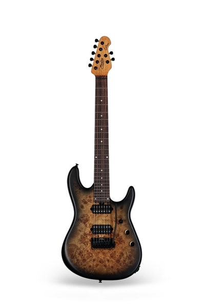 The long awaited Jason Richardson 7-String Cutlass has finally arrived -- engineered specifically to meet the demands of Jason Richardson’s technique, the ‘Richardson7’ features a custom contoured lower horn for fret access, roasted maple neck with rosewood fretboard, and highly figured Poplar Burl top. It offers high output Sterling by Music Man designed humbuckers, a 12dB “PushPush” volume boost, coil-tap “Push-Push” tone control, and Modern Tremolo. Available in Natural Poplar Burst.