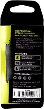 The Ernie Ball FretWrap by Gruv Gear is a professional string dampener/muting accessory that every studio, session player, and tapping aficionado should have! Slide on the FretWrap to effectively cut overtones and sympathetic resonance during recording, live performance, two-hand tapping, or any creative situation where you need that extra muting hand for cleaner takes without the unwanted string noise or ringing. The adjustable strap lets you fine-tune the pressure and dampening of the strings. You can quickly slide the dampener over the headstock when not in use. No special guitar modification, installation, or tools required - Yet amazingly effective! Small - Fits 6-stringed electric & acoustic guitars, 4-stringed basses and ukuleles.
