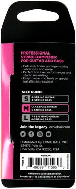 The Ernie Ball FretWrap by Gruv Gear is a professional string dampener/muting accessory that every studio, session player, and tapping aficionado should have! Slide on the FretWrap to effectively cut overtones and sympathetic resonance during recording, live performance, two-hand tapping, or any creative situation where you need that extra muting hand for cleaner takes without the unwanted string noise or ringing. The adjustable strap lets you fine-tune the pressure and dampening of the strings. You can quickly slide the dampener over the headstock when not in use. No special guitar modification, installation, or tools required - Yet amazingly effective! Medium - Fits 5-stringed basses and 6-string classical guitars.