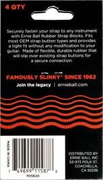 Securely fasten your strap to any instrument with Ernie Ball rubber strap blocks. Fits most strap button types and provides a tight fit without any modification to your guitar. Made of flexible, durable rubber that will slip over existing strap buttons for a secure connection. Set of 4 pc.
