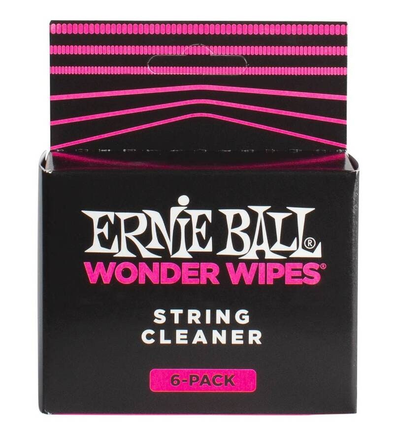 Individually sealed 6-pack of Wonder Wipe String cleaning moist towelettes. Clean & extend the life of your strings in one easy swipe. Ernie Ball's proprietary lubricating formula eliminates acid, dirt, and grime while maximizing the life and tone of your strings.