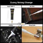 Apply TUNE-IT to Nut Slots, Bridge, Saddles, and String Guide every string change to stay in tune longer & reduce string breakage. Two convenient applicators are included.