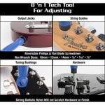 Ready to change strings, our GRIP ONE sets a higher standard for what you should expect when winding, cutting & pulling. Our rubber lined head, smooth precision bearing & comfort grip creates the perfect experience when winding your strings. The strong carbon steel string cutter effortlessly cuts the smallest to the fattest strings. Need a bridge pin puller for your acoustic guitar, we got you covered! Lastly, the Octopus 8 ‘n 1 Tech Tool packs a powerful punch for those minor maintenance jobs. The innovative designs is perfect for tightening or loosening output jacks, control pots, tuning machine bushings or screws. It features a Phillips #1, Flat-head screwdriver & is equipped with the most popular hex wrench sizes: 10mm, 12mm, 14mm, 1/2”, & 7/16”. Whether you are just starting to play guitar or a seasoned guitar tech, Music Nomad’s complete care & maintenance kit will keep your guitar in top shape to look, sound & play the best!