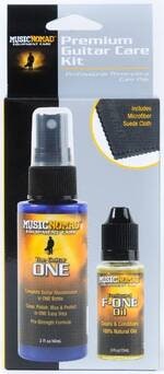 MusicNomad's Professional Grade Three-Piece Guitar Care Kit contains one each of our most popular items to care for stringed instruments. The Guitar ONE (2 oz. bottle) is an all-in-1 cleaner, polish, and wax for everyday cleaning and polishing for gloss finishes in one easy step. (Not recommended for satin/matte finishes.) Great for the body, back of neck, and finished fretboards. The streak-free, organically formulated proprietary formula has UV protectants, gloss enhancers, and even smells amazing. The 100 percent natural Fretboard F-ONE Oil (0.5 oz.) helps clean, condition, restore, and protect your unfinished rosewood, ebony, or maple fretboard and contains no lemon oil, petroleum, wax, or water. Also included is a large 12-inch x 12-inch premium suede microfiber cloth to be used with these products or by itself to clean fingerprints, sweat, dust, and grime.