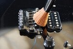 Our patented, innovative design both extends the life and preserves the tone of strings & cleans the body & hardware without any cleaning solutions. The premium quality washable microfiber pad cleans on top AND underneath guitar strings in seconds. The 100% lint free microfiber pad protects frets and fretboard from getting damaged while at the same time cleaning them. Also, the microfiber pad quickly cleans dust, grime and fingerprints on the instrument’s body and hard to reach areas. Turn it around to use the super soft, natural brush fibers as a cleaner for dust buildup and care on the body, bridge, pickups, saddles, tuners, headstock and more. Cleaning off dust & grime is a must do before you apply any polish to avoid scratching the finish. The All in 1 Nomad Tool can be used on all electric and acoustic stringed instruments, drums, mixers, computers, pedals and more.