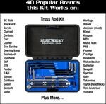 With lots of guitar brands and models out there make sure you check out Music Nomad’s Truss Rod Wrench size by Brand Finder to see a list of over 50 Guitar Brands/Models this kit will work on including Fender, PRS, Gibson, Taylor, MusicMan, Epiphone, ESP, EVH, Gretsch, Guild, Cordoba, Ibanez, Jackson, Knaggs, Charvel, Bourgeois, Takamine, Yamaha to name a few and the very few it does not work on (mostly acoustics that the truss rod is recessed deep in the soundhole). That’s Music Nomad quality – raising the bar in equipment care.