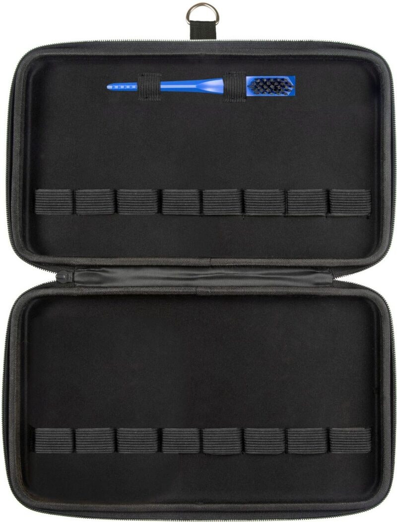 MusicNomad’s Nut File storage case was designed to hold up to 16 Nut Files. The rugged case can be zipped up for those on the go, or it comes with a convenient metal loop to hang up open or closed on your workbench. We even designed and included a stiff bristle cleaning brush to clean off any material residue in the diamond coating. 12” x 7” x 2”