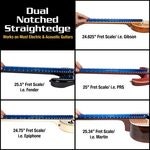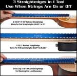 Diagnosing how level your frets and fretboard has never been easier with MusicNomad's patent pending Tri-Beam Dual Notched and Precision Straight Edge. Creating a new higher standard, our unique 3 wall triangle design gives you two notched straight edges custom designed to cover more fret scale lengths ranging from 24.625" to 25" and 25.34" to 25.625" to measure the flatness of your fretboard and neck relief. Rotate to the 3rd side to use the 17.6" (44.7cm) "notch-free" straight edge to check the levelness of your frets. Using the highest quality aluminum and manufacturing techniques ensures straightness of the entire length and critically important polished, smooth flat edges. We even include a convenient hang hole. That's MusicNomad quality - raising the bar in equipment care.