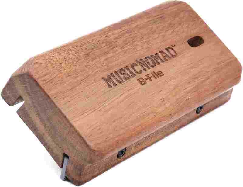 What if you could quickly and confidently bevel your fret ends? Filing fret ends with a consistent angle and finish has never been easier with MusicNomad’s B-File. With the ideal 23° and 3° file angles, no detail was overlooked in designing this revolutionary bevel file. The high-quality, durable Acacia wood ergonomic handle is shaped with a curved radius underside and is wide enough to lay centered across the entire fretboard, providing for unmatched stability when filing. The fully adjustable and replaceable high carbon-steel file includes a double cut side and single cut side, allowing for full customization to meet your needs. Our innovative design includes deeper channel recesses for the file, ensuring the file clears the body. That’s MusicNomad quality, bringing fret care to the next level.
