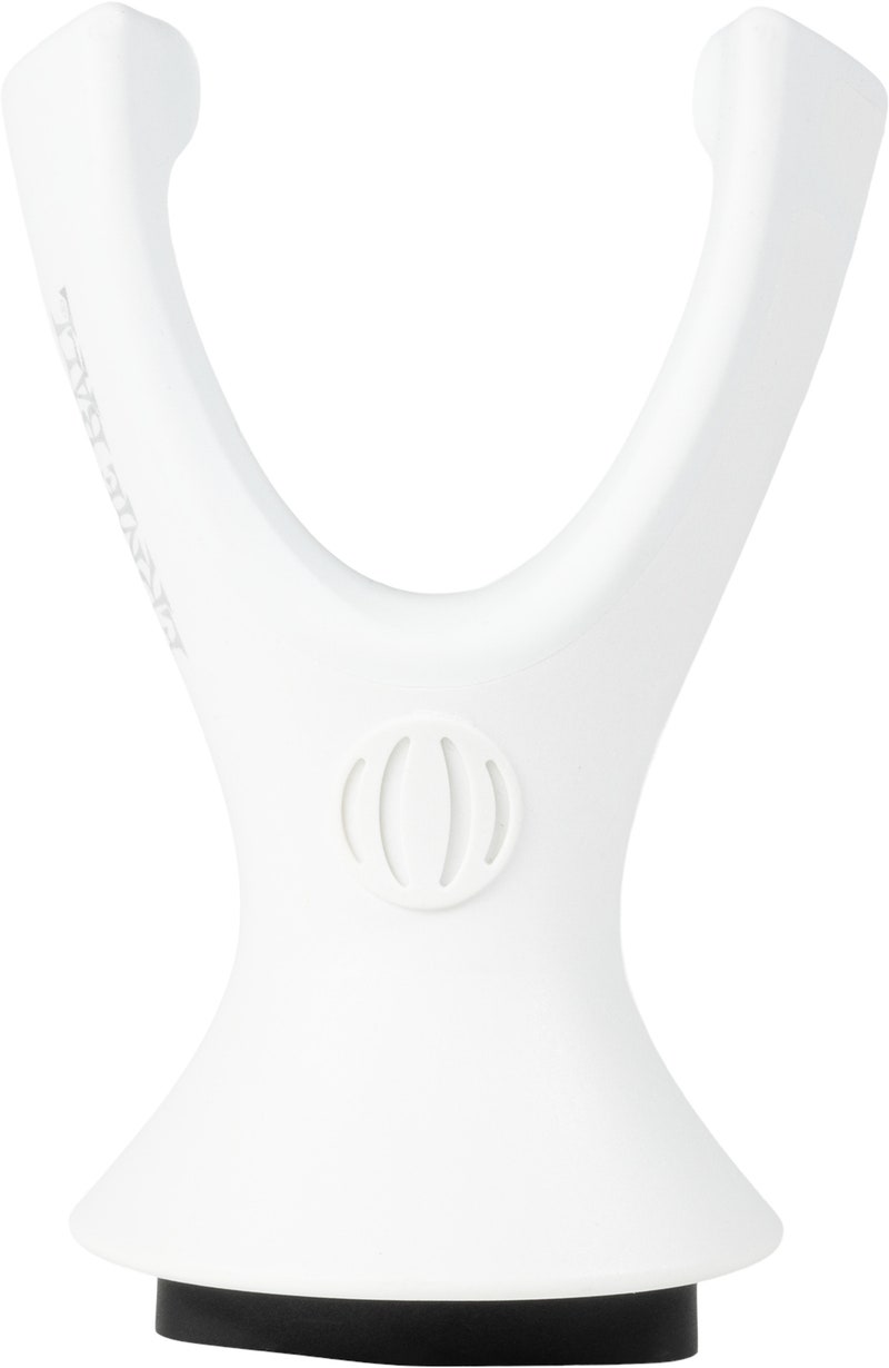 - Non-slip, non-marring materials grip the neck just below the headstock.