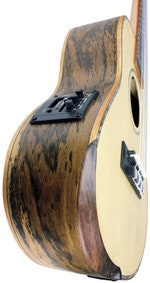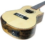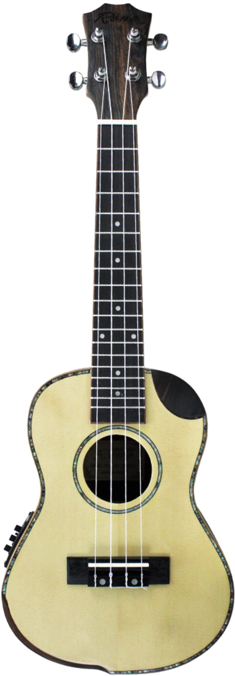 Article number 4333285Gorgeous Grand Concert sized ukulele with armrest design and half cutaway in Ebony, including Belcat EQ electronics. This sweet-sounding ukulele has a solid Spruce top, and Caidie back and sides, and Abalone shell and wood binding.