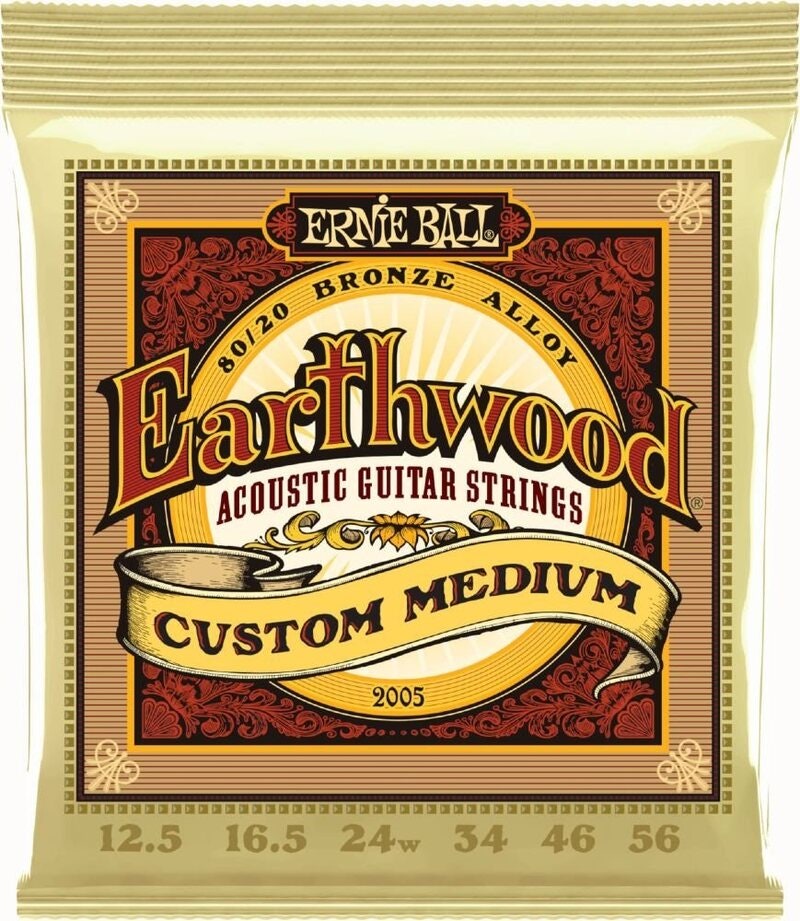 Ernie Ball Earthwood Bronze 80/20 Custom Medium, strings for steel stringed acoustic guitar.