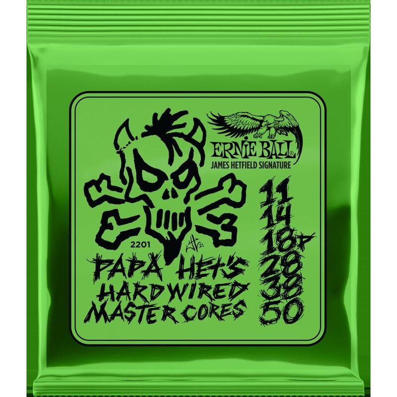 Papa Het’s Hardwired Master Cores signature string sets have been co-developed with Metallica’s James Hetfield over the past decade to best meet his demanding performance requirements. This signature set consists of James’ preferred 11-50 gauge combination using thicker Paradigm core wire. They are ideal for James’ aggressive style and technique, offering a heavier sound with extra pitch stability.