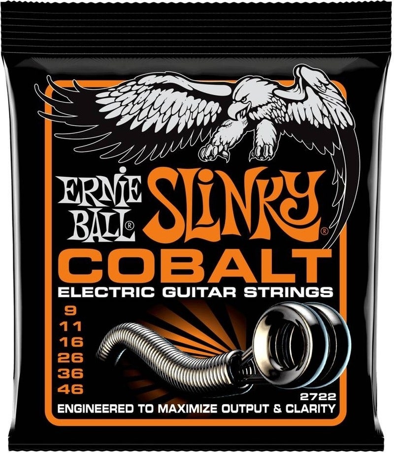 Ernie Ball Cobalt Slinky Electric Guitar Strings provide an extended dynamic range, incredible harmonic response, increased low end, and crisp, clear highs. Cobalt provides a stronger magnetic relationship between pickups and strings than any other alloy previously available. Cobalt Slinky guitar strings are also soft and silky to the touch, making string bending a breeze.