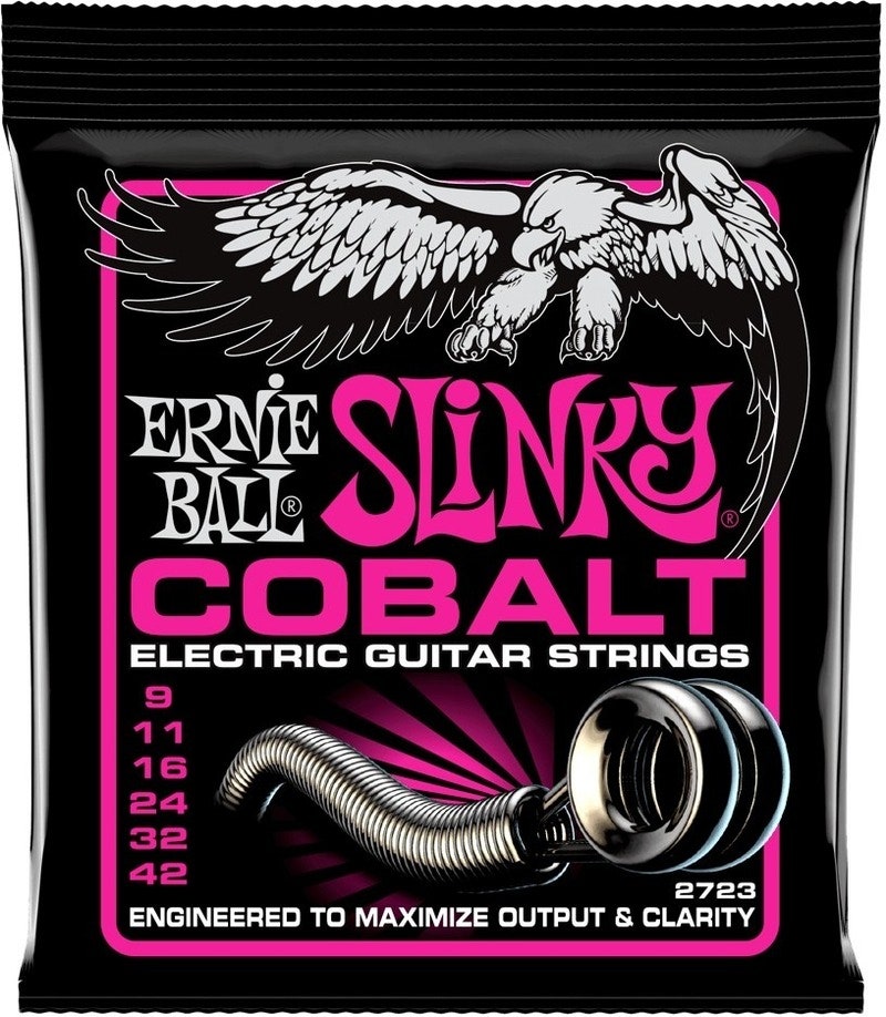 Ernie Ball Cobalt Slinky Electric Guitar Strings provide an extended dynamic range, incredible harmonic response, increased low end, and crisp, clear highs. Cobalt provides a stronger magnetic relationship between pickups and strings than any other alloy previously available. Cobalt Slinky guitar strings are also soft and silky to the touch, making string bending a breeze.
