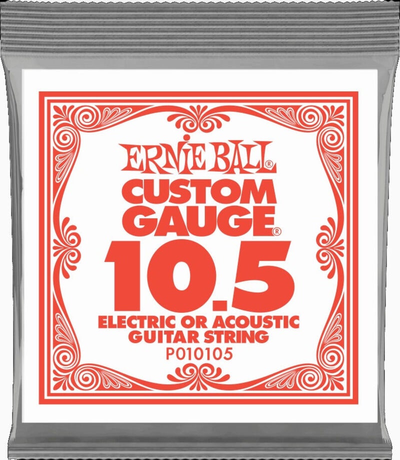 Ernie Ball Plain Steel Electric or Acoustic Guitar Strings are made of specially tempered tin plated high carbon steel used on electric and acoustic guitars. Ernie Ball revolutionized the market by offering Custom-Gauge single string options allowing guitarists to create personalized string sets.