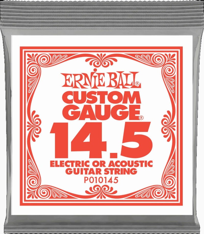 Ernie Ball Plain Steel Electric or Acoustic Guitar Strings are made of specially tempered tin plated high carbon steel used on electric and acoustic guitars. Ernie Ball revolutionized the market by offering Custom-Gauge single string options allowing guitarists to create personalized string sets.