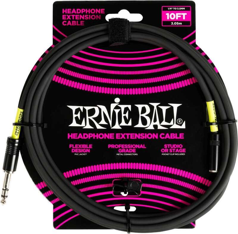 Ernie Ball’s new headphone extension cables are a professional grade solution for musicians using headphones or in-ear monitors (IEMs) on stage or at home practicing or recording. Features a roadworthy construction for dependable performance and a convenient belt clip and cable tie. Offered in 10ft and 20ft lengths with 3.5mm and 1/4” plugs for a variety of studio and performance applications. Get connected and stay connected with Ernie Ball’s line of extension cables.