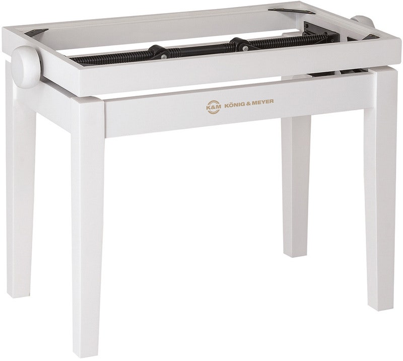 Piano bench wooden-frame. Solid European beech wood, varnished with four coats of polyester. Stable legs with non-slip rubber end-caps. Dual crossbar mechanism for easy and precise height adjustment. The piano bench ships flat and is easy to assemble.