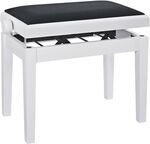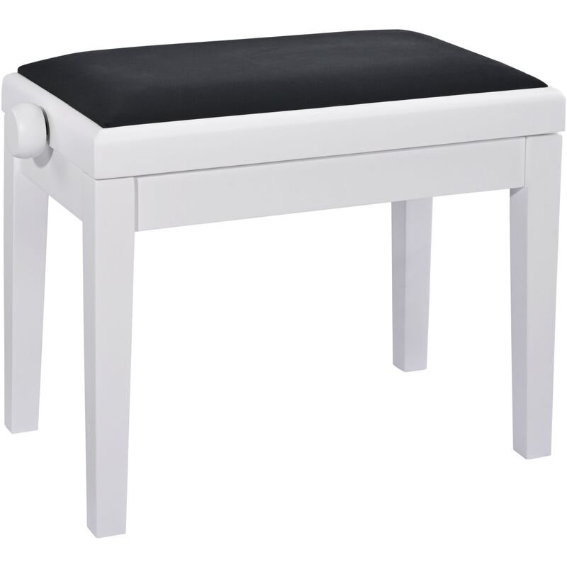 The classic piano bench is made of solid wood, finished in matt white and upholstered in black velour. Manufactured from high-quality materials using state-of-the-art technology, the bench's height can be easily adjusted to give the player the ideal sitting position. Thanks to its attractive design and outstanding durability, the bench is an ideal companion for a variety of rooms – from classrooms and recording studios to concert halls and stages. Leveling feet ensure a wobble-free and secure stand.