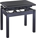 The height-adjustable piano bench is made of black matt varnished metal. The height can be adjusted continuously from 445 to 545 mm. The black imitation leather upholstery measures 465 x 305 mm.