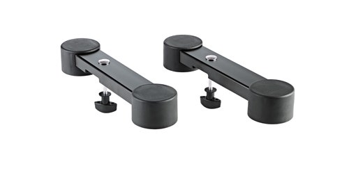 The short version of support arms for »Omega« keyboard stands 18800, 18810 and 18820. The length of the support arms is only 264 mm and is therefore ideally suited for stage pianos and keyboards with a small depth. The large round rubber pads ensure a secure and anti-slip hold.