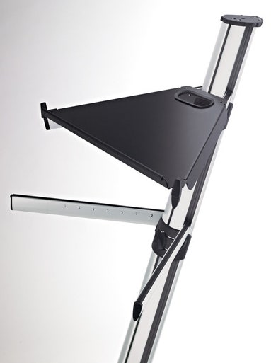 The stable aluminum tray creates new uses for the - Spider Pro« keyboard stand. By placing the tray on the upper support arms of the - Spider Pro« now even smaller synthesizers, controllers, drum machines etc. can be used. The integrated handle can also be used for cable management. The equipment stop with an integrated edge protective strip and the anti-slip rubber end caps provide extra hold. And to top it off the tray only weighs 1 kg.