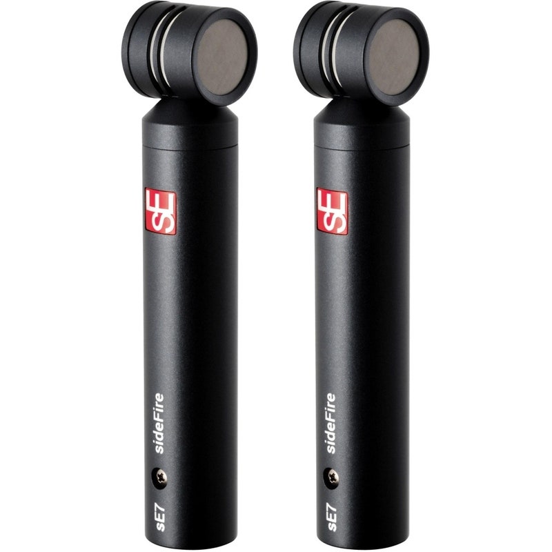 The sE7 sideFire is a variant of the sE7 high-quality back-electret small-diaphragm condenser microphone intended for a wide range of studio and live sound applications, from acoustic guitars to pianos to drums and beyond, with a rotated capsule to allow for close miking.